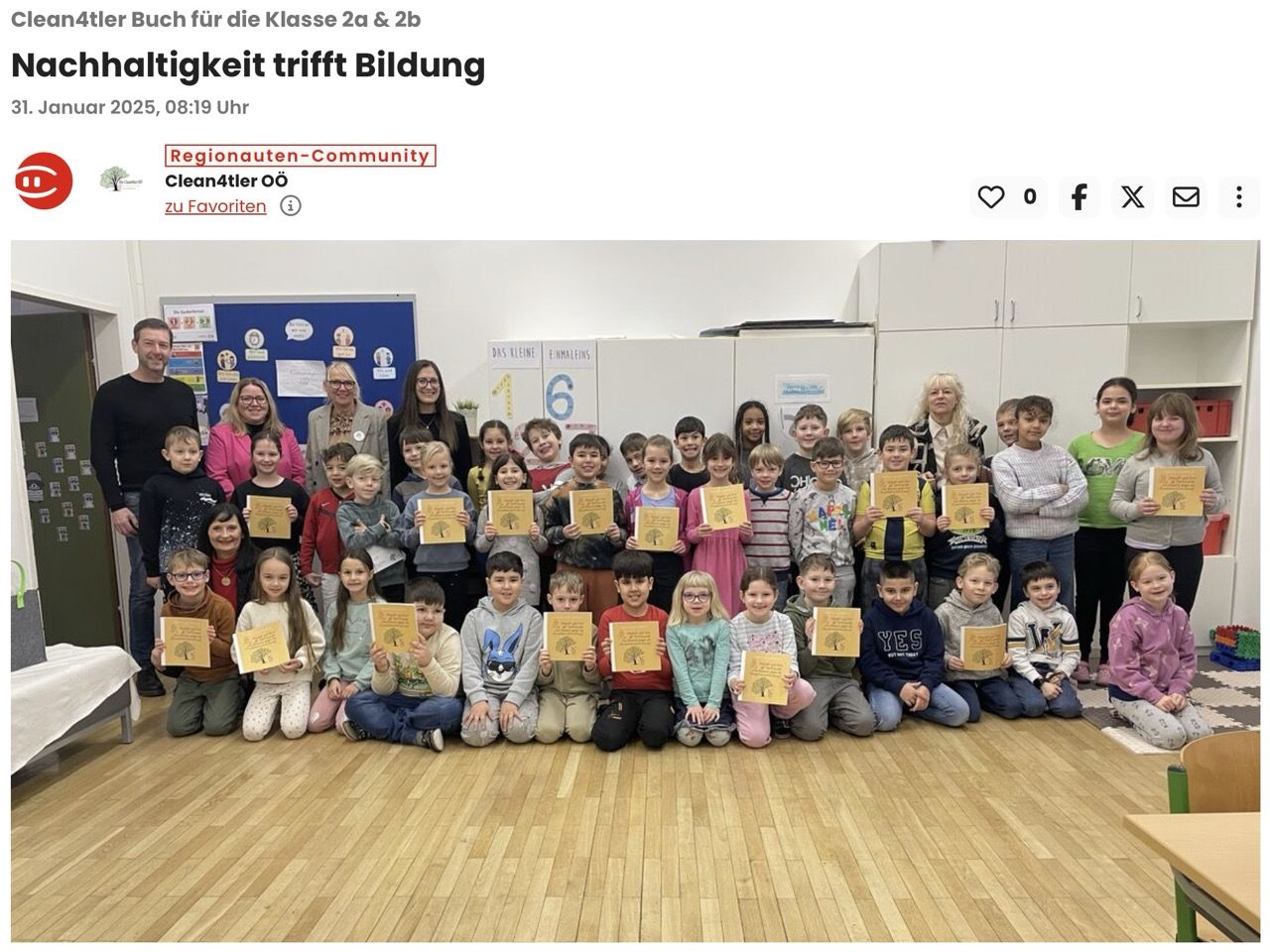 Eine wunderbare Initiative für Bildung und Nachhaltigkeit nahm ihren Anfang, als ein besonderes Geschenk ab sofort den Unterricht der 2a und 2b der Volksschule Schärding bereichert: Das von den Clean4tlern stammende Buch „Hannah und ihre Tierfreunde“ wurde vom Elternverein Schärding erworben und den Klassen gespendet. Mit dem Buch soll den Kindern auf spielerische Weise der Wert von Umweltschutz und Nachhaltigkeit vermittelt werden.