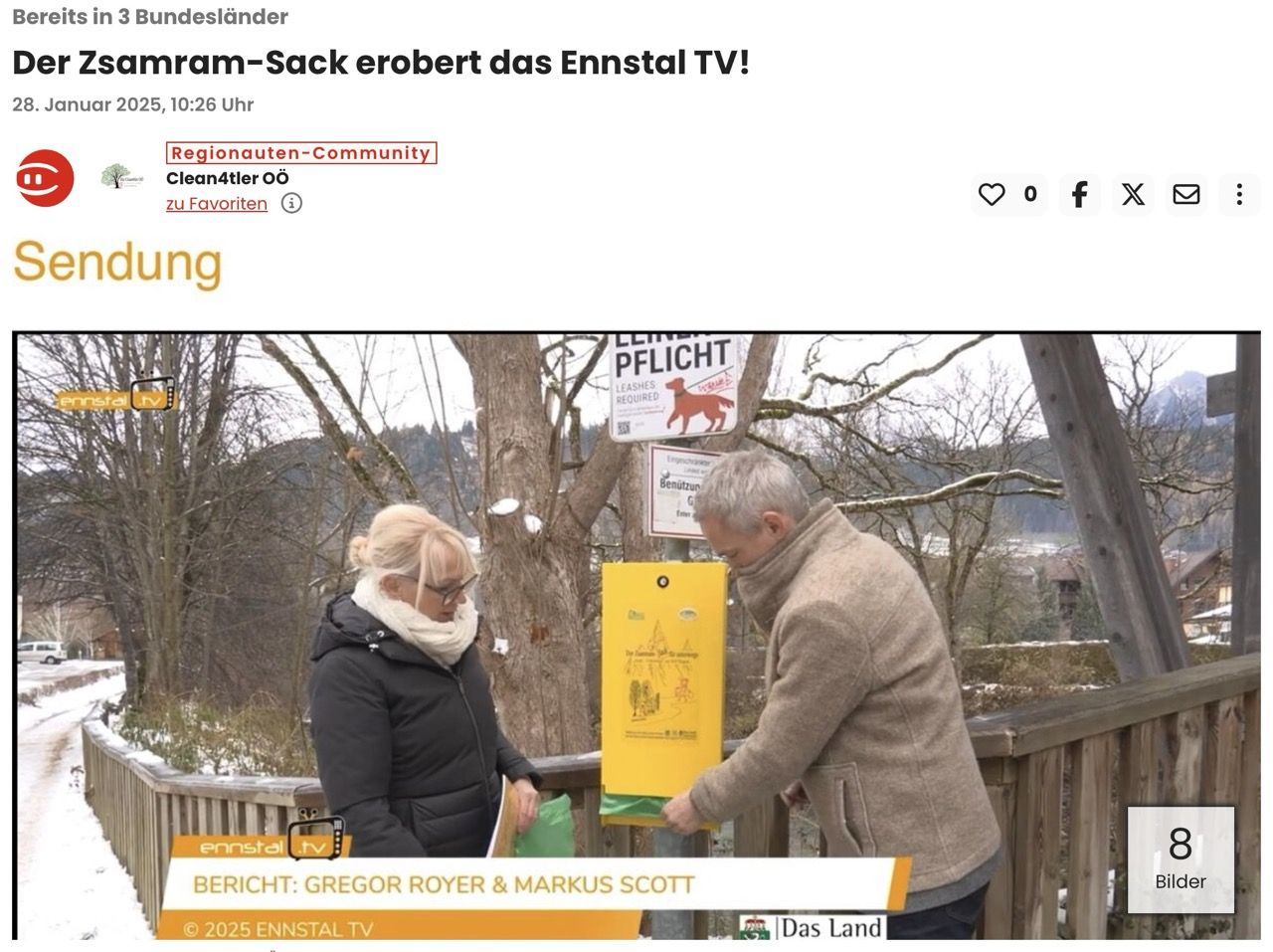 Wir von Clean4ter freuen uns riesig über die wachsende Aufmerksamkeit für unser Projekt „Zsamram-Sack“, das es von Oberösterreich in die Steiermark geschafft hat und jetzt sogar im Ennstal TV, dem beliebten Regionalsender, vorgestellt wurde!