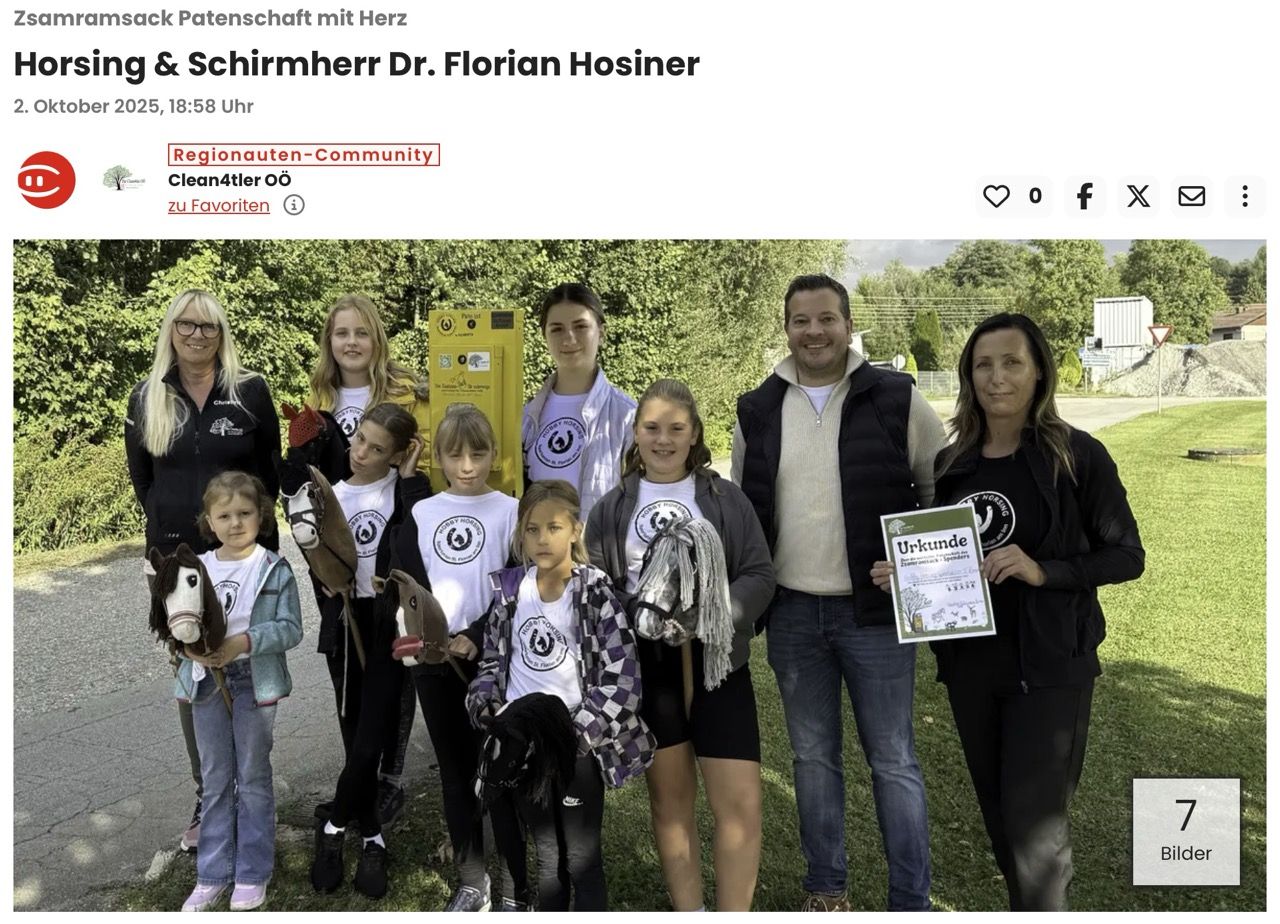 Unter der Schirmherrschaft von Dr. Florian Hosiner, praktizierender Arzt in Suben und Obmann des Umweltausschusses in St. Florian am Inn, setzt die Sektion Hobby Horsing von der Sportunion St.Florian am Inn unter der Leitung von Henrieta Fischbauer ein starkes Zeichen für unsere Natur: